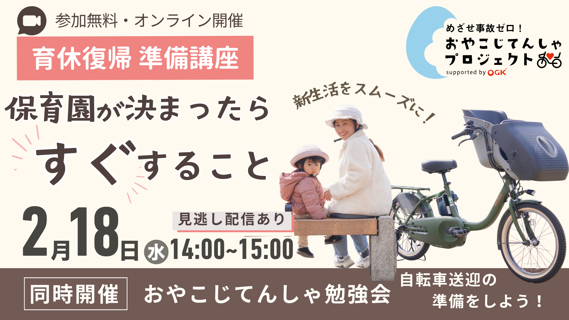 \2026年入園/育休パパ・ママ向け講座~はじめての保活を応援!byおやこじてんしゃプロジェクト(無料・オンライン開催)